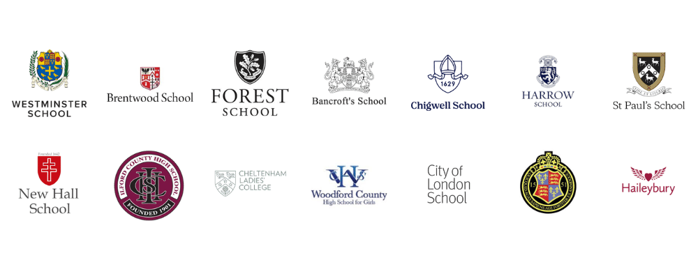 The schools shown above represent recent destination schools of pupils supported by members of the team. Woodford Education Ltd has no formal affiliation with these institutions. All school names, logos and trademarks remain the property of their respective schools and are used for illustrative purposes only.